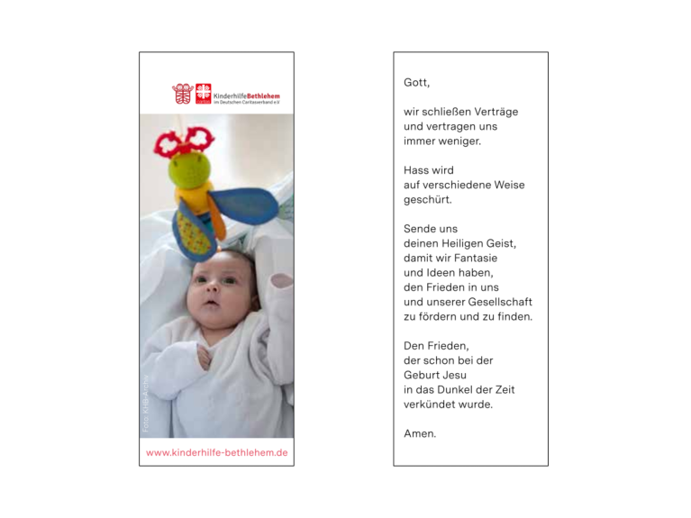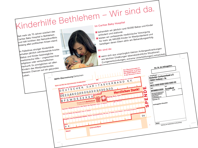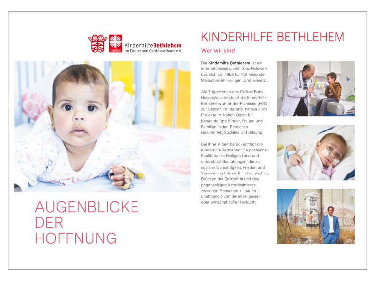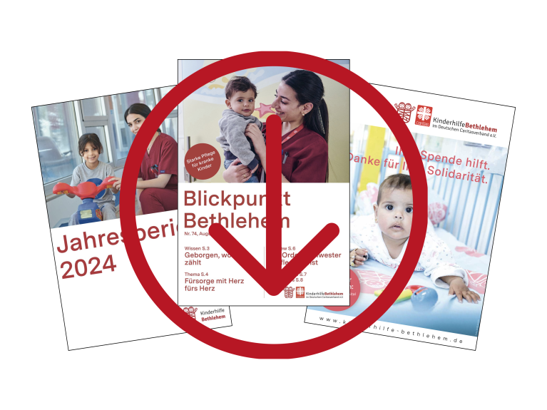 Hier können Sie kostenfrei Informationsmaterialien über die Kinderhilfe Bethlehem und das Caritas Baby Hospital bestellen. Gerne senden wir Ihnen auch größere Mengen zum Verteilen zu.