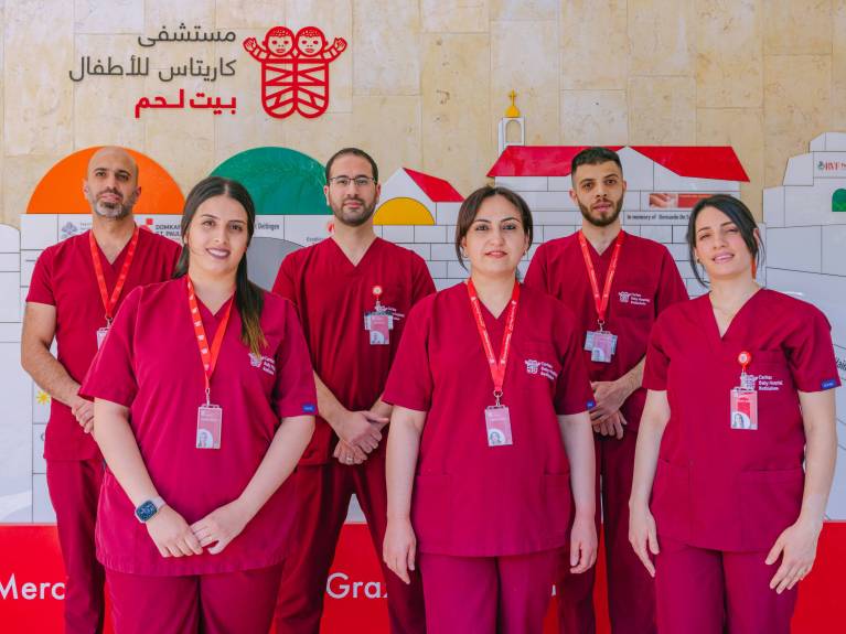 Damit Wissen nachhaltig wirkt, muss es geteilt werden. Als akkreditiertes Lehrkrankenhaus des Palästinensischen Medizinalrats bildet das Caritas Baby Hospital jährlich zehn Assistenzärztinnen und -ärzte von der Intensivmedizin bis zur Neuropädiatrie aus. Studierende lokaler Universitäten erhalten in der Kinderklinik ihre klinische Ausbildung in Pädiatrie, aber auch in Krankenpflege, Labormedizin, Physiotherapie oder Sozialarbeit. In Zusammenarbeit mit der Bethlehem University spielt zudem das genetische Screening eine wachsende Rolle, wodurch seltene Erkrankungen früher erkannt werden können.